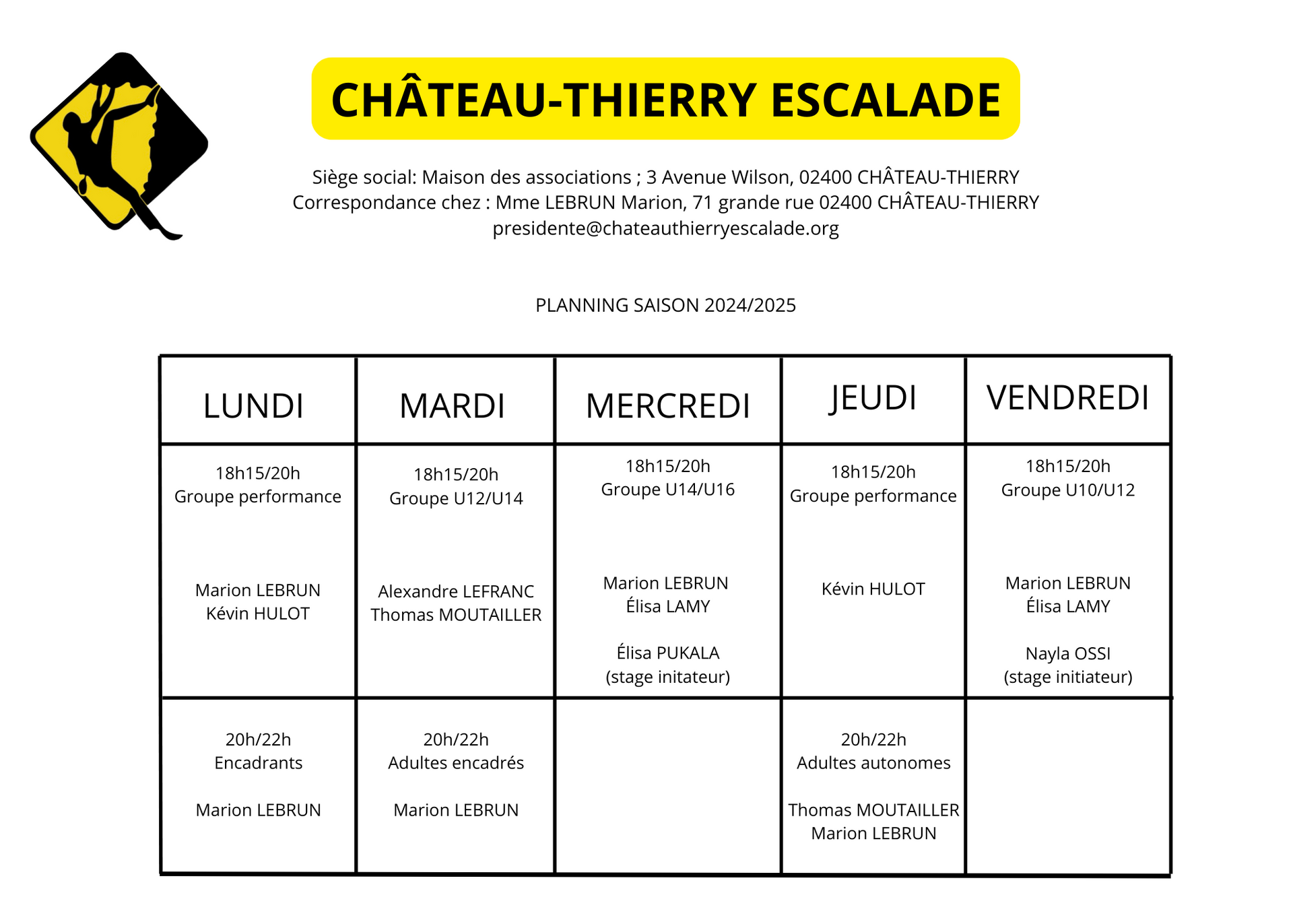 Si l’activité du gymnase est maintenue, nous organisons généralement 2 séances dans la semaine, mais attention, tout le monde ne peut pas venir puisque les encadrants profiteront aussi de ces séances pour s’entrainer et non surveiller avec attention.